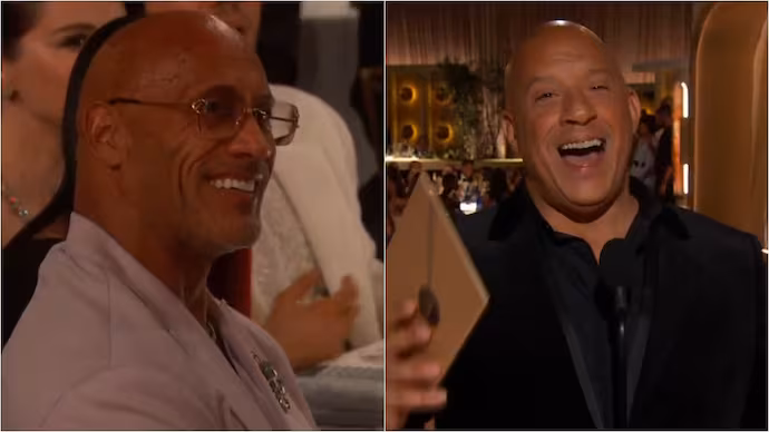 Vin Diesel and Dwayne ‘The Rock’ Johnson had an unexpected interaction that left fans buzzing. Diesel, presenting the award for Cinematic and Box Office Achievement, greeted Johnson with a casual “Hey, Dwayne” while on stage. Johnson responded with a sheepish smile, but the moment was laden with tension, given their infamous public feud during the Fast & Furious franchise.