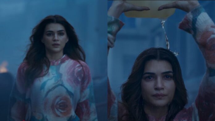The haunting clip opens with Kriti Sanon walking through a chaotic, war-torn scene, visibly stressed and broken as people around her are engulfed in fierce conflict. Her troubled expression is poignant, pulling viewers into her emotional turmoil. As the tension intensifies, Kriti’s character is shown pouring petrol over herself and holding a lighter, seemingly on the verge of self-destruction. What happens next remains a mystery, but the intense first look promises a gripping and heart-wrenching narrative that’s impossible to ignore.