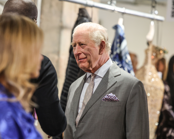In addition to the main exhibition, The King viewed a showcase by Brand63Africa and met designers involved in its creation. The new social enterprise connects fashion designers of African heritage with global fashion markets, promoting small-batch production and traditional craftsmanship. Its first collection, launching later this year, will support established designers committed to sustainability and community empowerment — values aligned with The King’s longstanding advocacy of sustainability and a circular fashion economy.